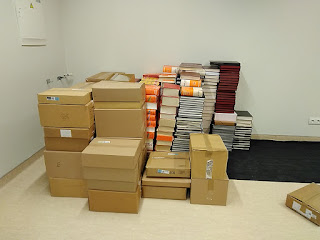As instalações da Biblioteca do bloco C estão a ser desativadas devido às obras e os materiais estão a ser transportados para outro bloco da escola.